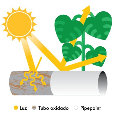 PipePaint es una pintura a base de agua y libre de disolventes que protege las tuberías de calefacción contra la corrosión prematura y las hace altamente reflectantes. Esto garantiza que la máxima cantidad de luz se dirija al cultivo.